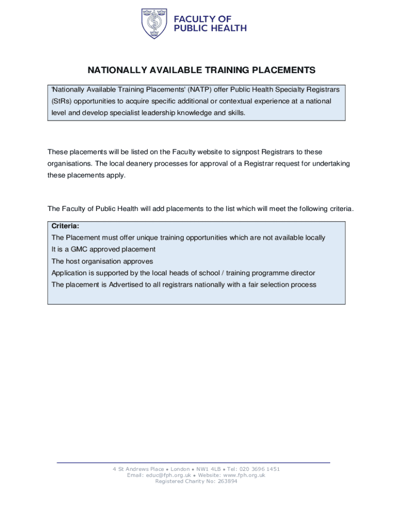 Nationally Available Training Placements is not the form you're looking for?Search for another form here.