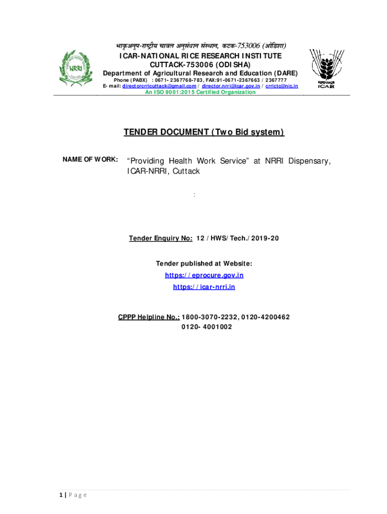 , 753006 ()INTERNATIONAL RICE RESEARCH INSTITUTE CUTTACK753006 (ODISHA) Department of Agricultural Research and Education (DARE) Phone (PBX) : 0671 2367768783, FAX:9106712367663 / 2367777 E mail: