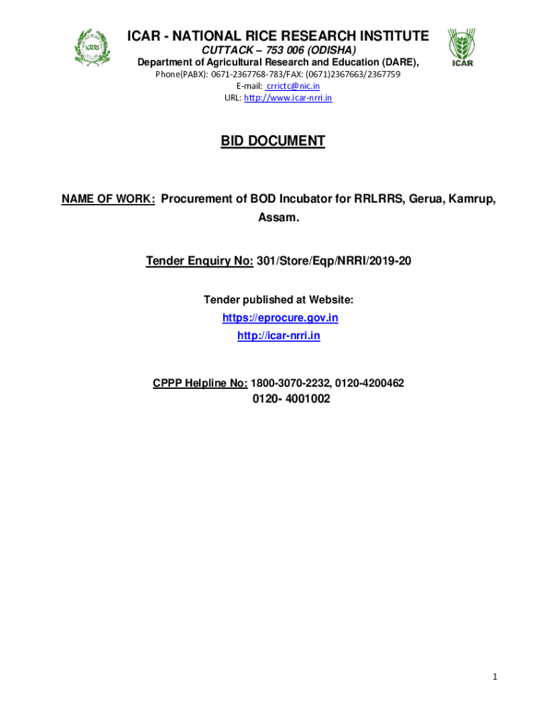 CAR NATIONAL RICE RESEARCH INSTITUTE CUTTACK 753 006 (ODISHA) Department of Agricultural Research and Education (DARE), Phone(PBX): 06712367768783/FAX: (0671)2367663/2367759 Email: crrictc@nic.in