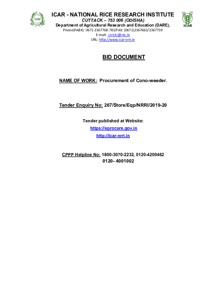 Get the free NAME OF WORK: Procurement of Cono-weeder