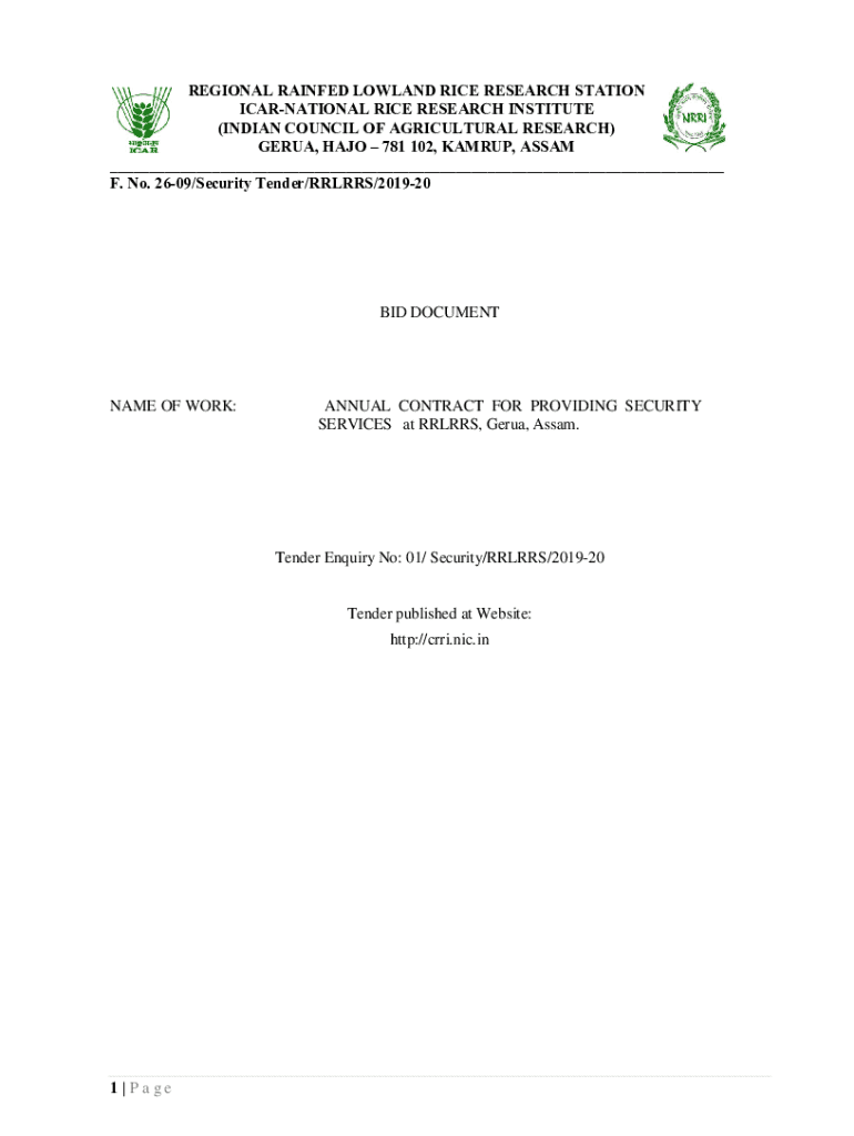 REGIONAL RAINED LOWLAND RICE RESEARCH STATION INTERNATIONAL RICE RESEARCH INSTITUTE (INDIAN COUNCIL OF AGRICULTURAL RESEARCH) GE RUA, HALO 781 102, ARUP, ASSAM ___ F. No. 2609/Security Tender/RRL