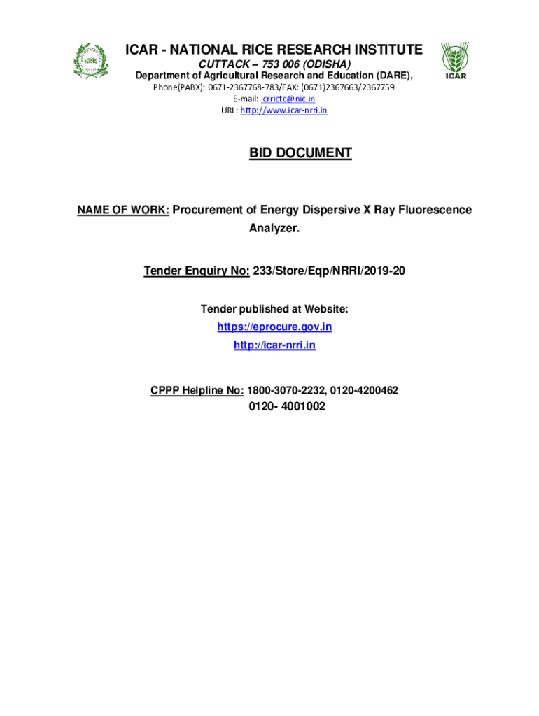Get the free NAME OF WORK: Procurement of Energy Dispersive X Ray Fluorescence