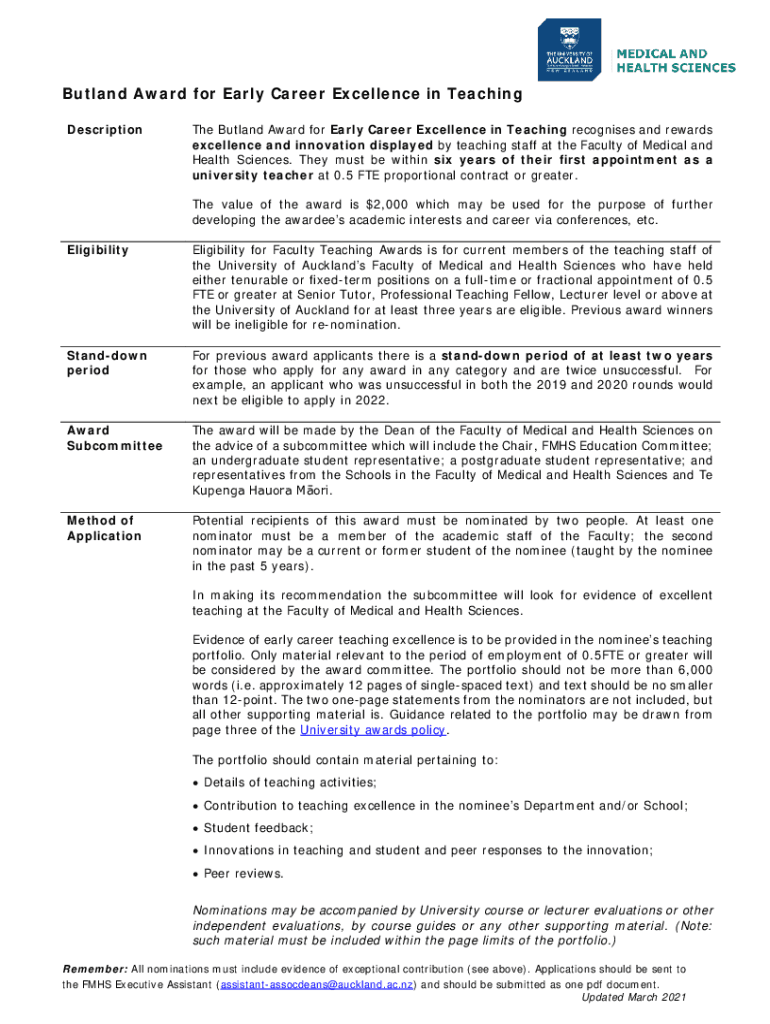 Get the free Butland Award for Early Career Excellence in Teaching to Dr ...