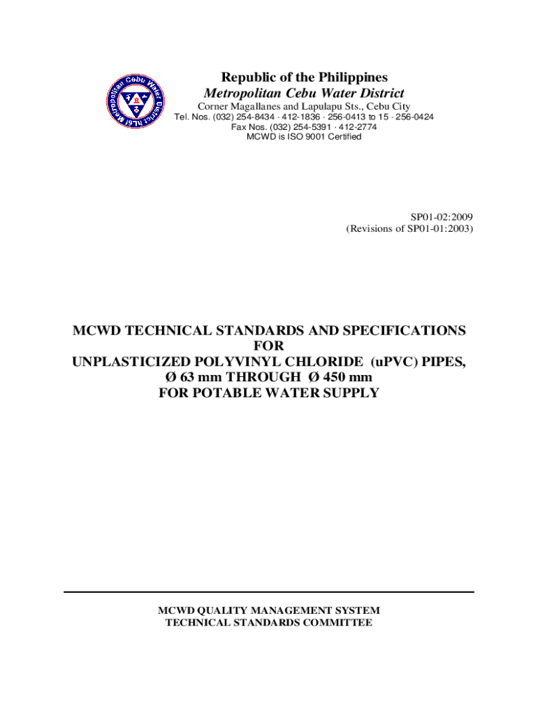 Republic of the Philippines Metropolitan Cebu Water District Corner Magazines and Laplace St's., Cebu City Tel. Nos. (032) 2548434 4121836 2560413 to 15 2560424 Fax Nos. (032) 2545391 4122774 MCD