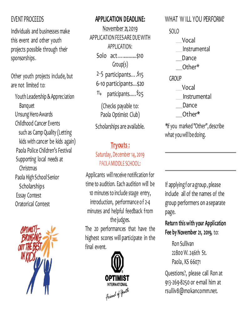 EVENT PROCEEDS Individuals and businesses make this event and other youth projects possible through their sponsorships. Other youth projects include, but are not limited to: Youth Leadership & Appreciation