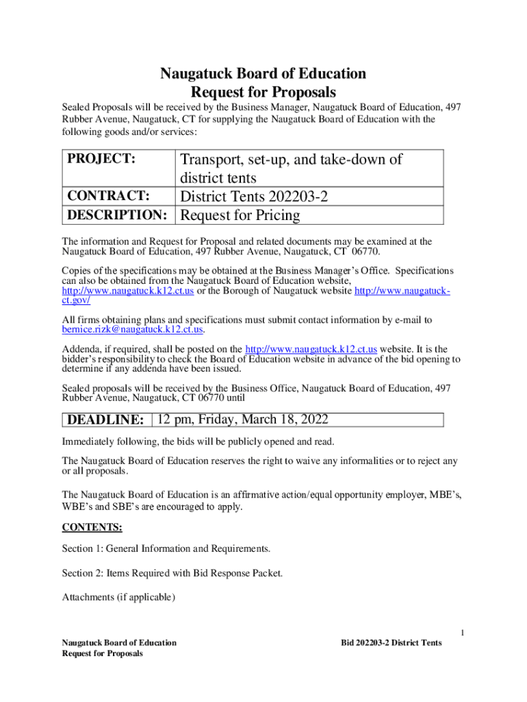 Get the free Naugatuck Board of Education Request for Proposals 202001 ...