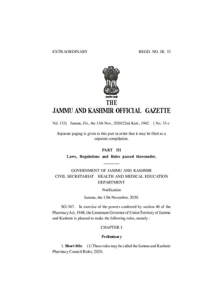 EXTRAORDINARYREGD. NO. JK33THEJAMMU AND KASHMIR OFFICIAL GAZETTE. Vol. 133] Jammy, Fri., the 13th Nov., 2020/22nd Kart., 1942. [No. 33e Separate paging is given to