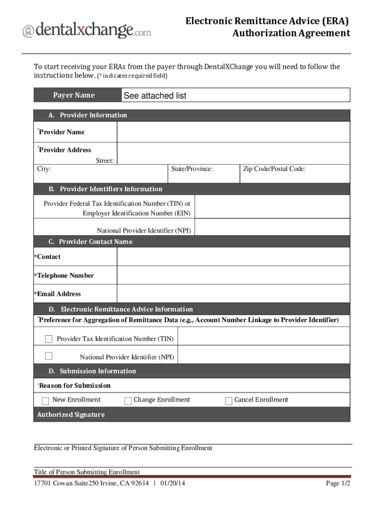 Payer ID: See Payer List Dental 835 EDI Enrollment Instructions: Please save this document to your computer. Open the file in the Adobe Reader program and type directly onto the form. Complete the