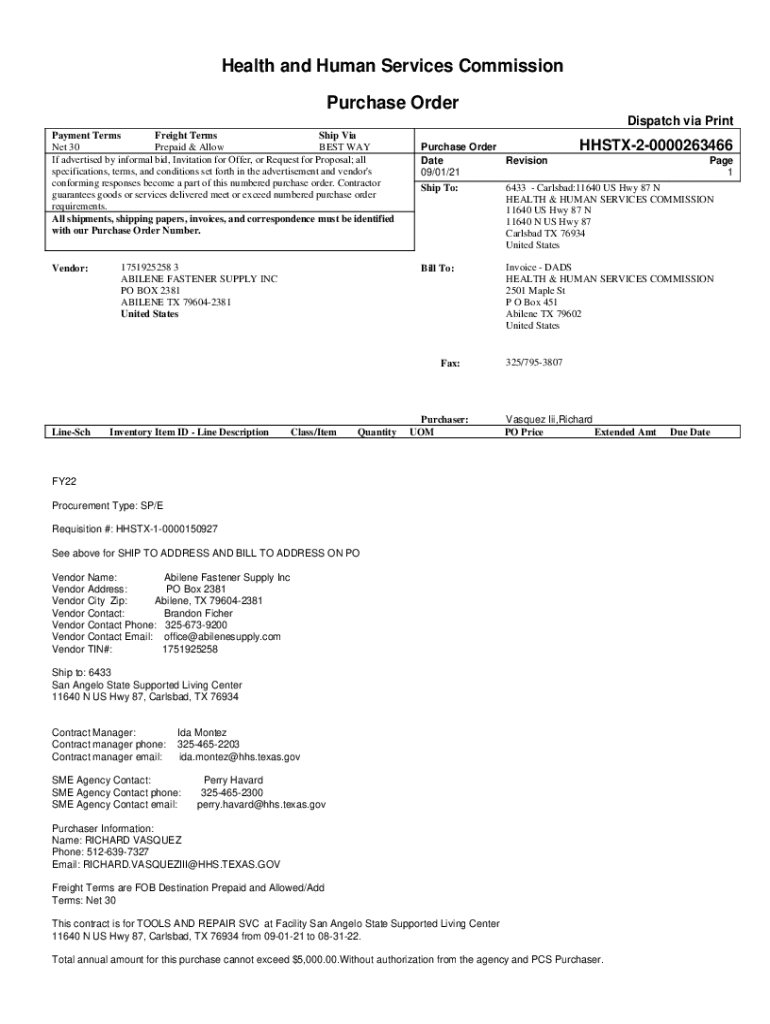 Health and Human Services Commission Purchase Order Dispatch via Print Payment Terms Freight Terms Ship Via Net 30 Prepaid & Allow the BEST WAY If advertised by informal bid, Invitation for Offer,