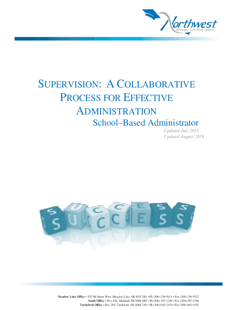 SUPERVISION: A COLLABORATIVE PROCESS FOR EFFECTIVE ADMINISTRATION Schooled Administrator Updated July 2015 Updated August 2019Meadow Lake Office 525 5th Street West, Meadow Lake, SK S9X 1B4 pH (306)