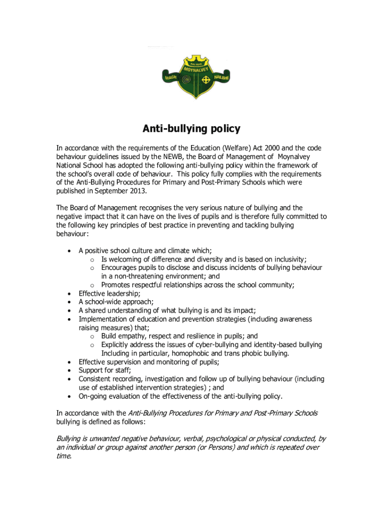 An anti-bullying policy - st is a document that outlines the procedures and strategies adopted by an organization, typically a school or workplace, to prevent and address incidents of bullying.