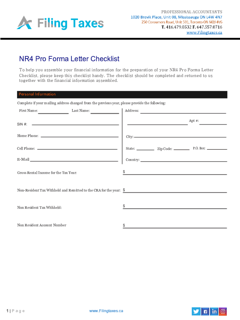 NR4 Pro Forma Letter Checklist To help you assemble your financial information for the preparation of your NR4 Pro Forma Letter Checklist, please keep this checklist handy. The checklist should be