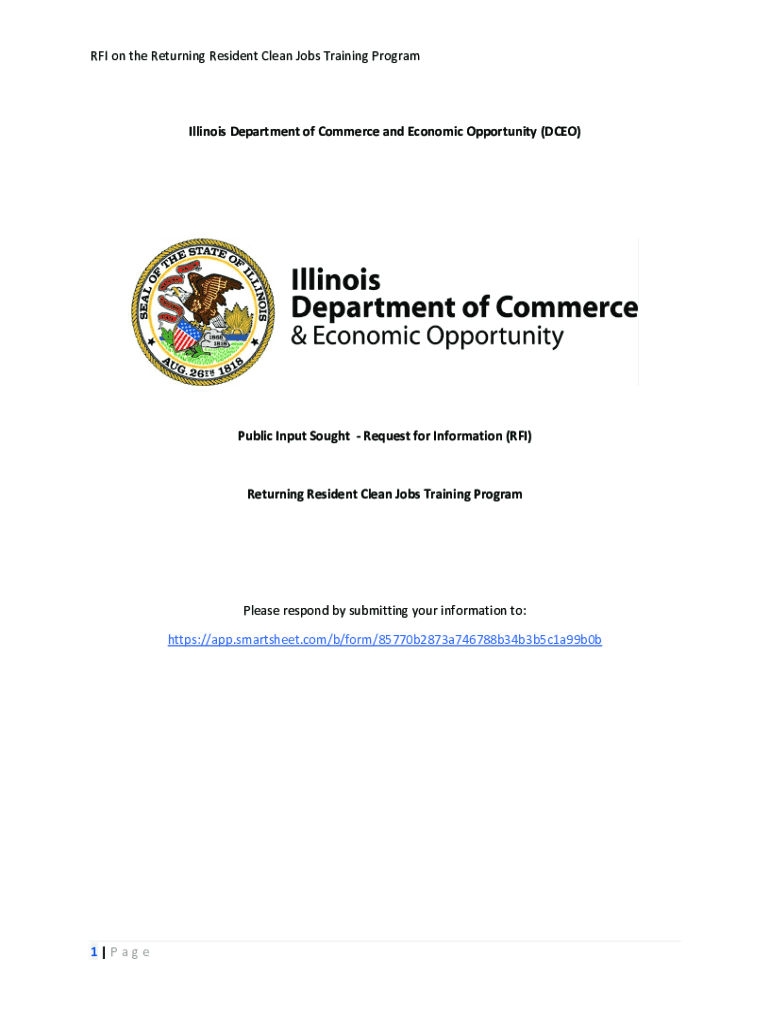 RFI on the Returning Resident Clean Jobs Training Program Illinois Department of Commerce and Economic Opportunity (DCE)Public Input Sought Request for Information (RFI)Returning Resident Clean Jobs
