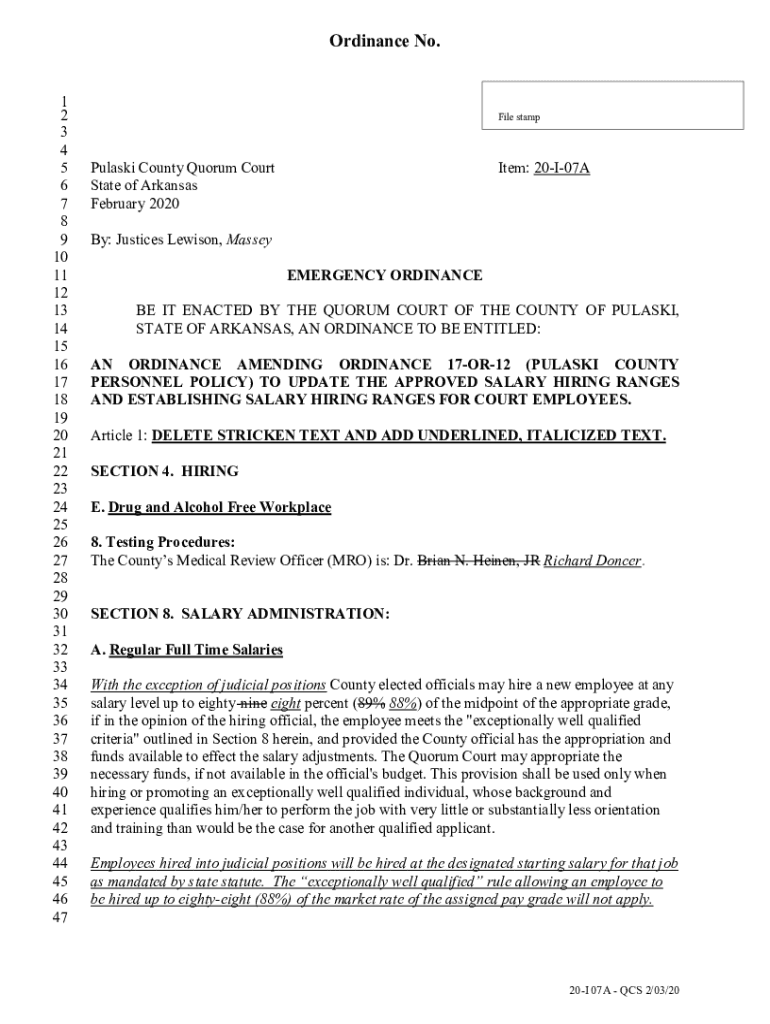 Ordinance No. 1 2 3 4 5 6 7 8 9 10 11 12 13 14 15 16 17 18 19 20 21 22 23 24 25 26 27 28 29 30 31 32 33 34 35 36 37 38 39 40 41 42 43 44 45 46 47File stamp Pulaski County Quorum Court State of Arkansas