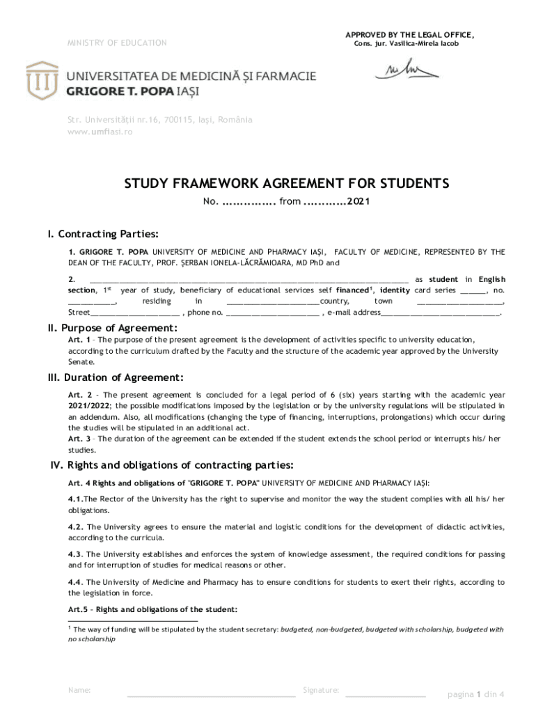 www.umfiasi.roSTUDY FRAMEWORK AGREEMENT FOR STUDENTS