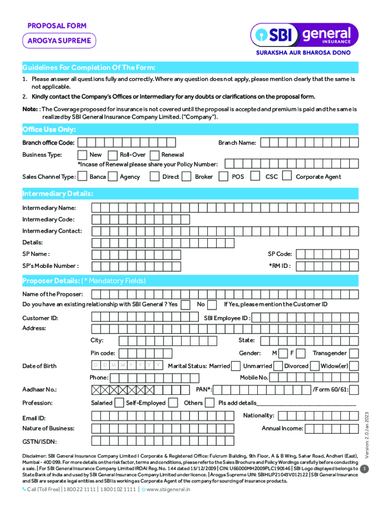 Any individual or family looking to enroll in the Arogya Supreme health insurance plan is required to file the proposal form.
