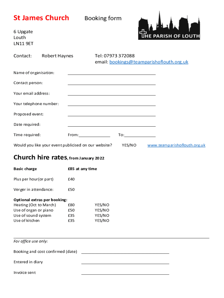 email: bookings@teamparishoflouth.org.ukName of organization:___Contact person:___Your email address:___Your