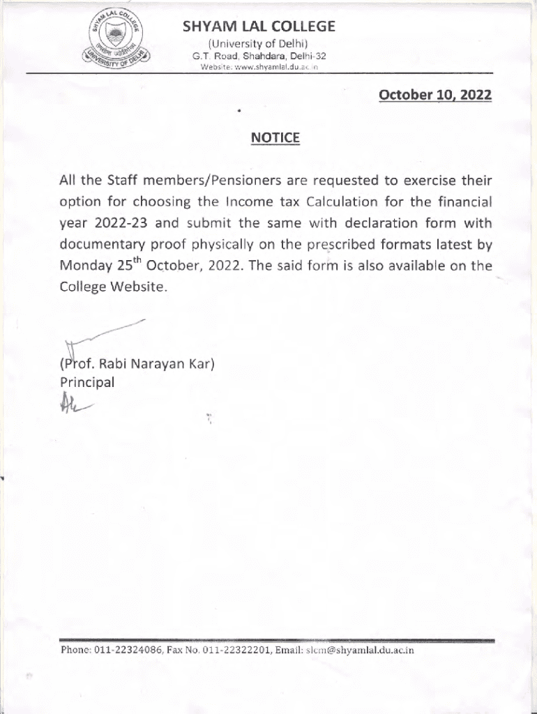 ASHRAM LAW COLLEGE University of Delhi I hereby undertake that I choose the below selected tax regime, and I am aware that the option once exercised cannot be changed during the financial year, and