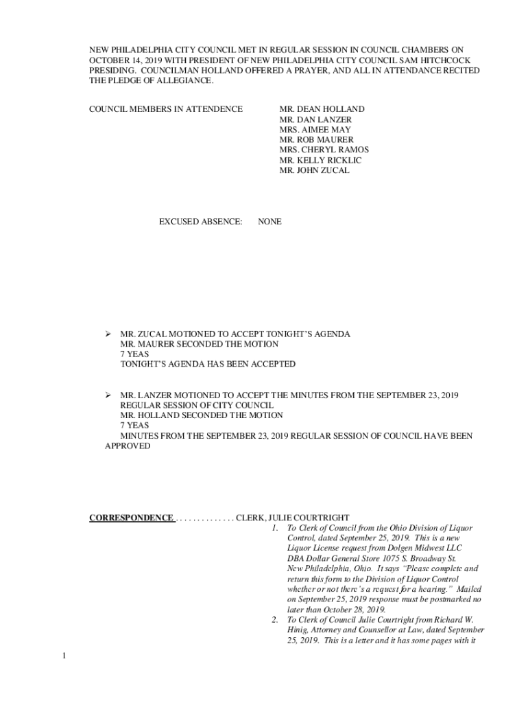 Get the free OCTOBER 14, 2019 WITH PRESIDENT OF NEW PHILADELPHIA CITY COUNCIL SAM HITCHCOCK