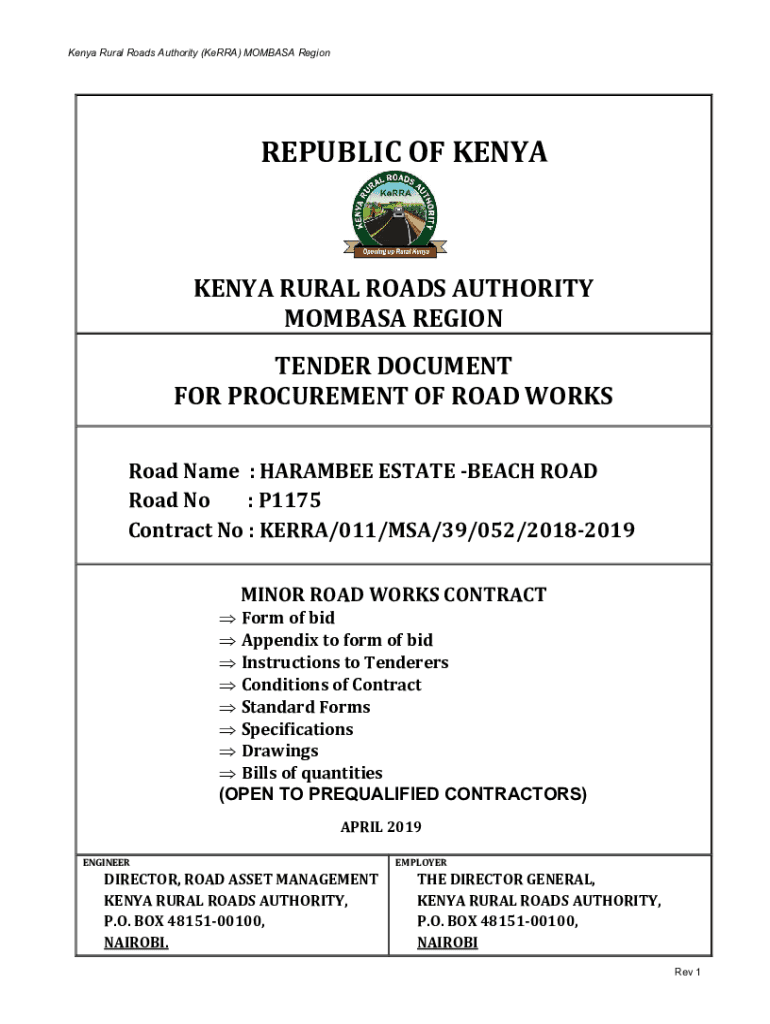 Get the free kenya rural roads authority mombasa region tender document ...