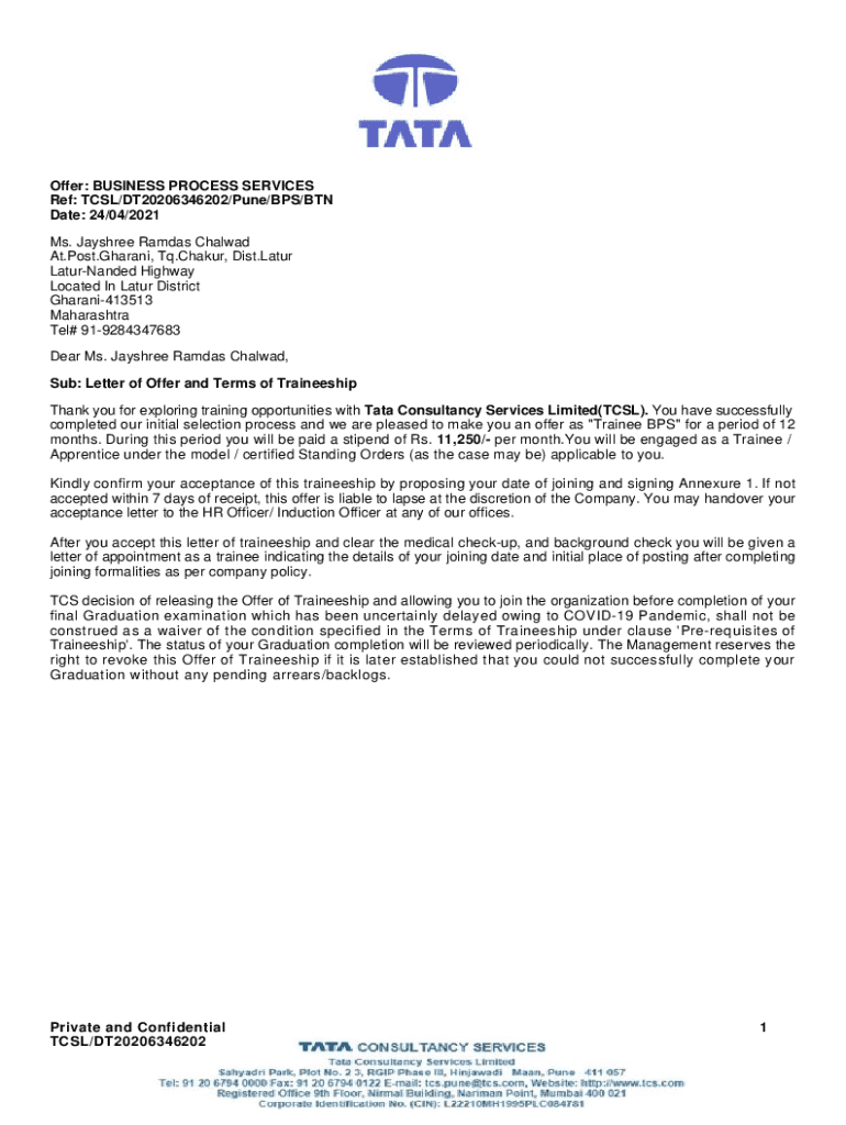 Ref: CSL/DT20206346202/Pune/BPS/BTN