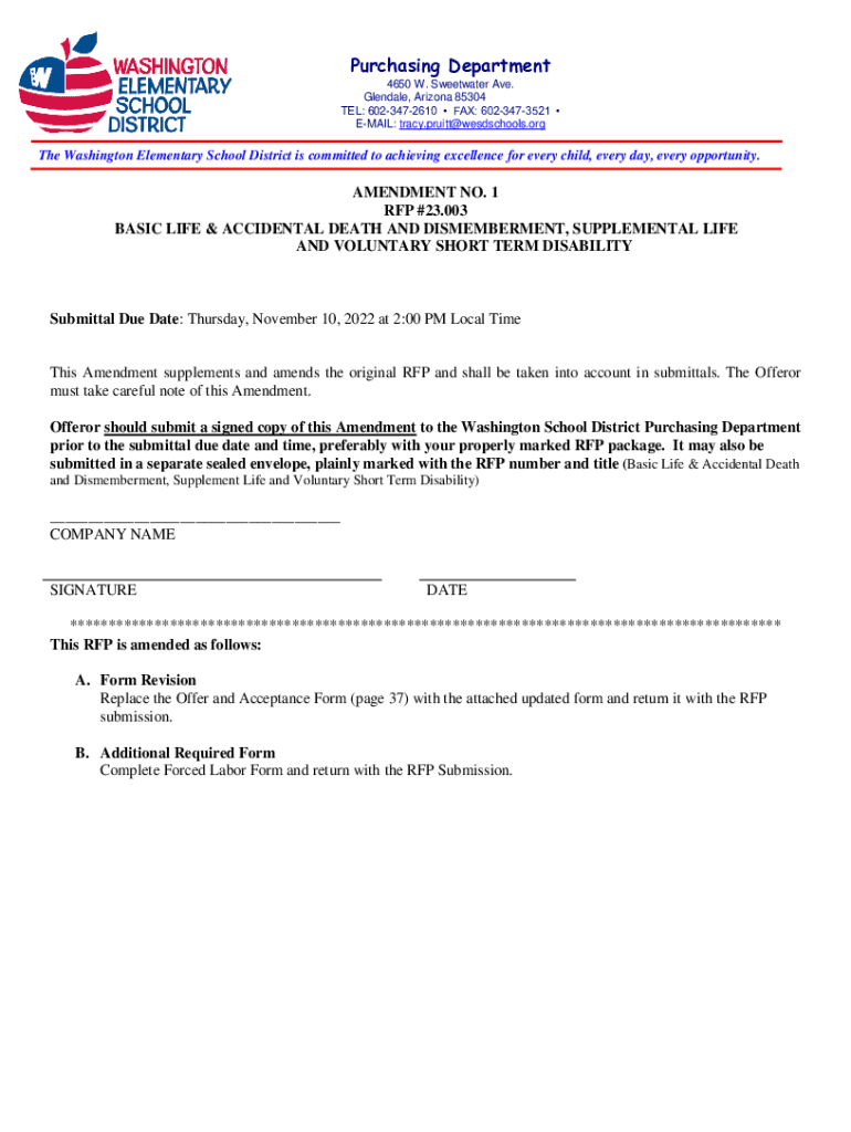 Get the free Purchasing Department - Washington Elementary School District