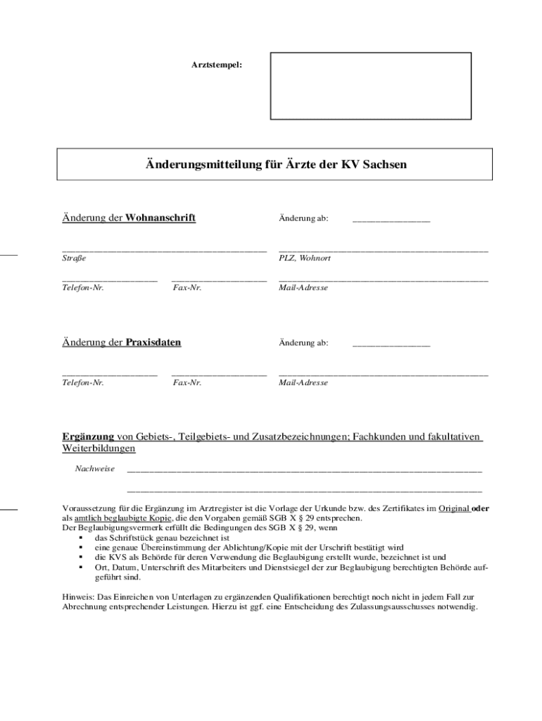 Arztstempel:nderungsmitteilung for rate her KV Sachsennderung her Wohnanschriftnderung ab:___