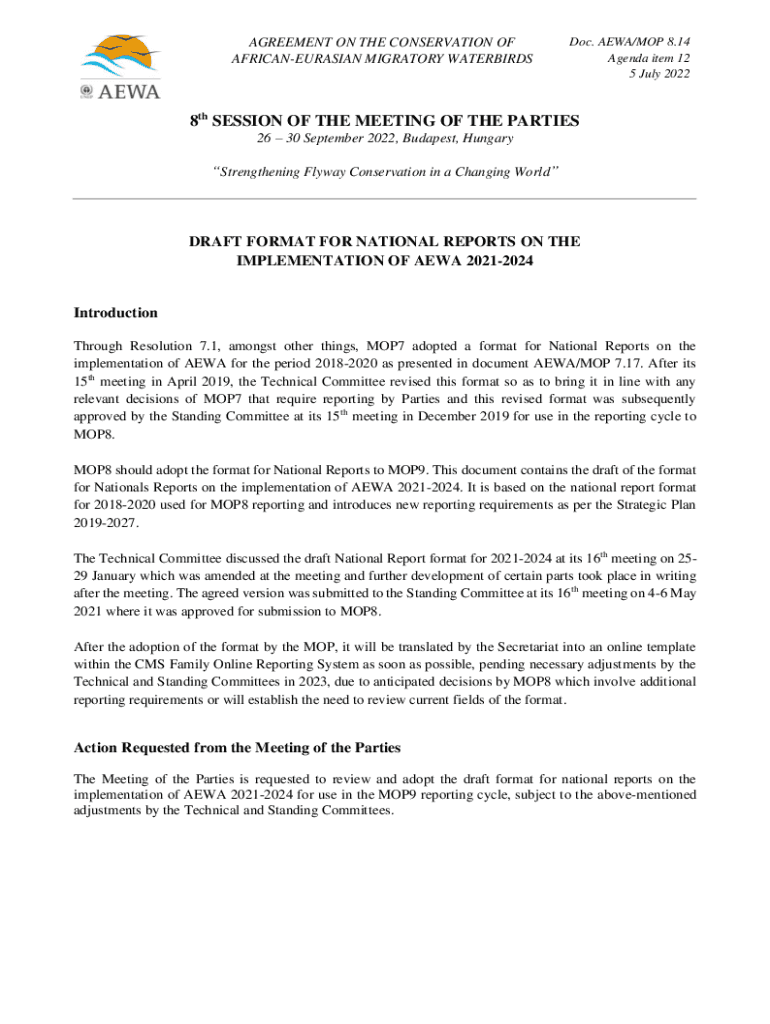 AFRICANEURASIAN MIGRATORY Waterbirds. AEA/MOP 8.14