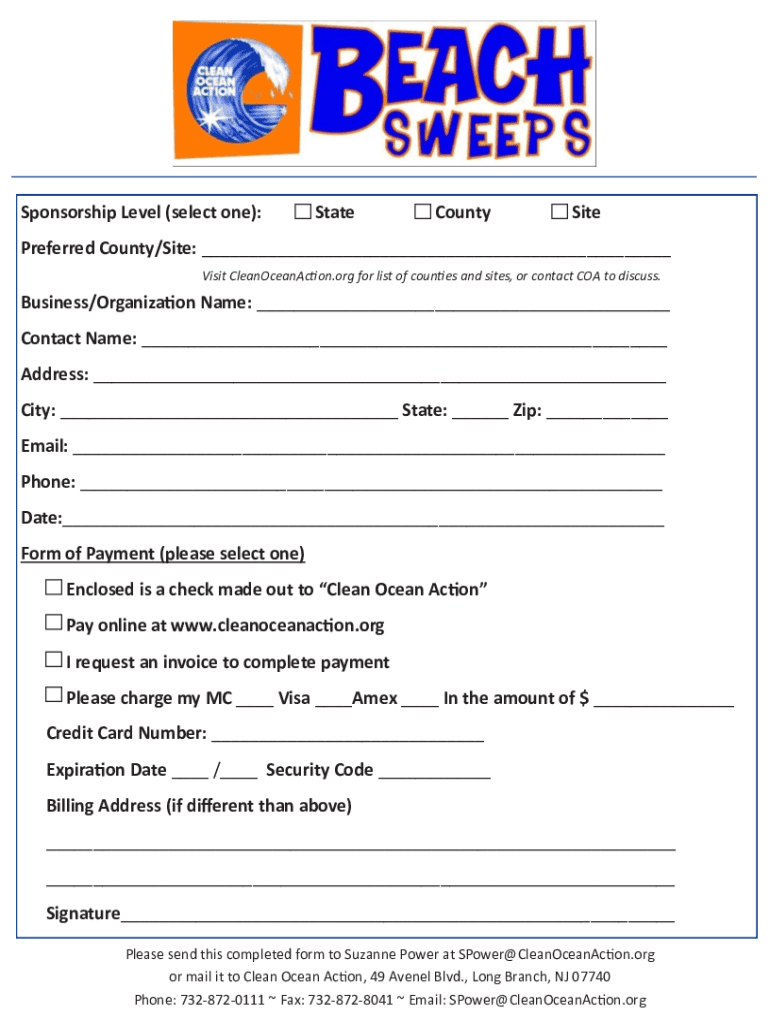 Get the free Beach Sweep Registration Form - Clean Ocean Action
