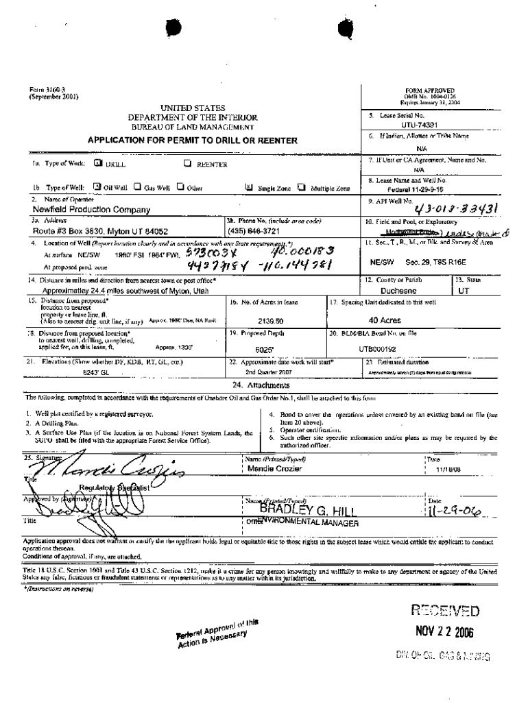 E4Form 31603 (September 2001)FORM APPROVED OMB No. 10040136Expires January 31, 2004UNITED STATES DEPARTMENT OF THE INTERIOR BUREAU OF LAND MANAGEMENT5. Lease Serial No. UTU743916. If Indian, Allotted