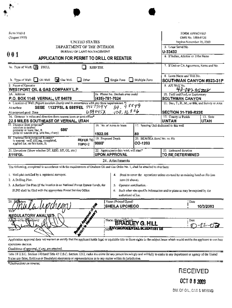 Form 31603FORM APPROVED OMB No. 10040136 Expires November 30, 2000(August 1999)UNITED STATES DEPARTMENT OF THE INTERIOR5. Lease Serial No. U33433BUREAU OF LAND MANAGEMENT6. If Indian, Allotted or