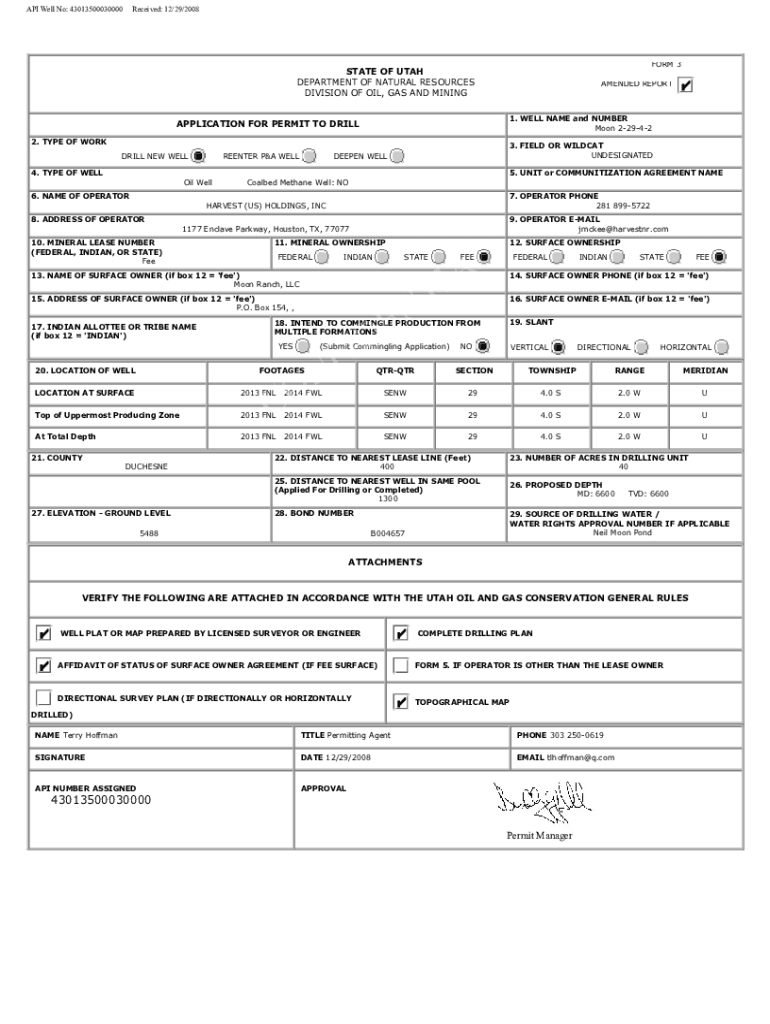 Well No: API Well No: 43013500030000 43013500030000Received: Received: 12/29/2008 12/29/2008FORM FORM 3STATE OF UTAH STATE DEPARTMENT OF NATURAL RESOURCES DIVISION OF OIL, MINING DIVISION OIL, GAS