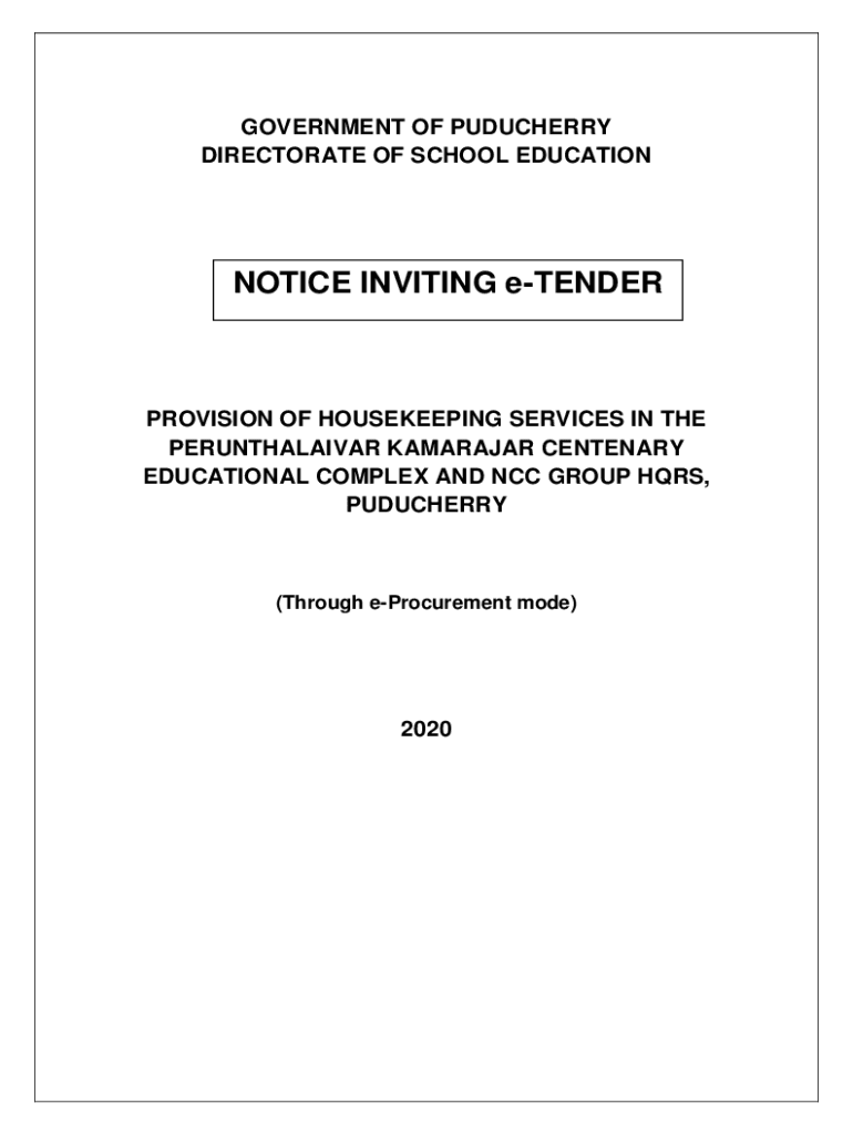 DIRECTORATE OF SCHOOL EDUCATIONNOTICE INVITING eTENDERPROVISION OF HOUSEKEEPING SERVICES IN THE