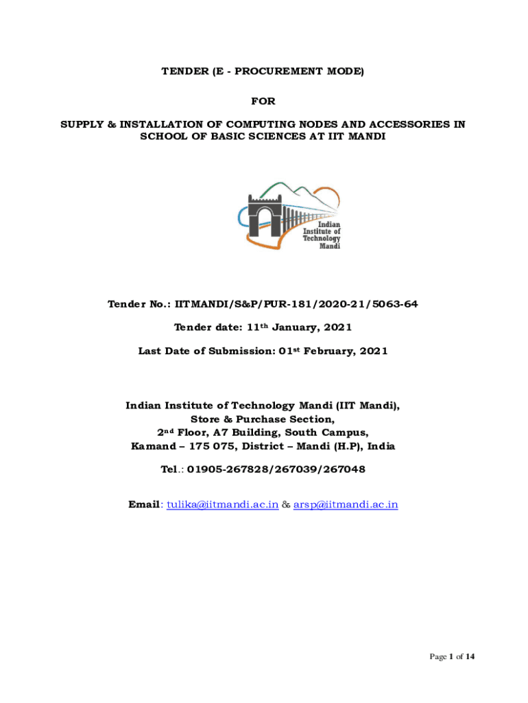 SCHOOL OF BASIC SCIENCES AT IIT MANDITender No.: HITMAN/S&P/PUR181/202021/506364