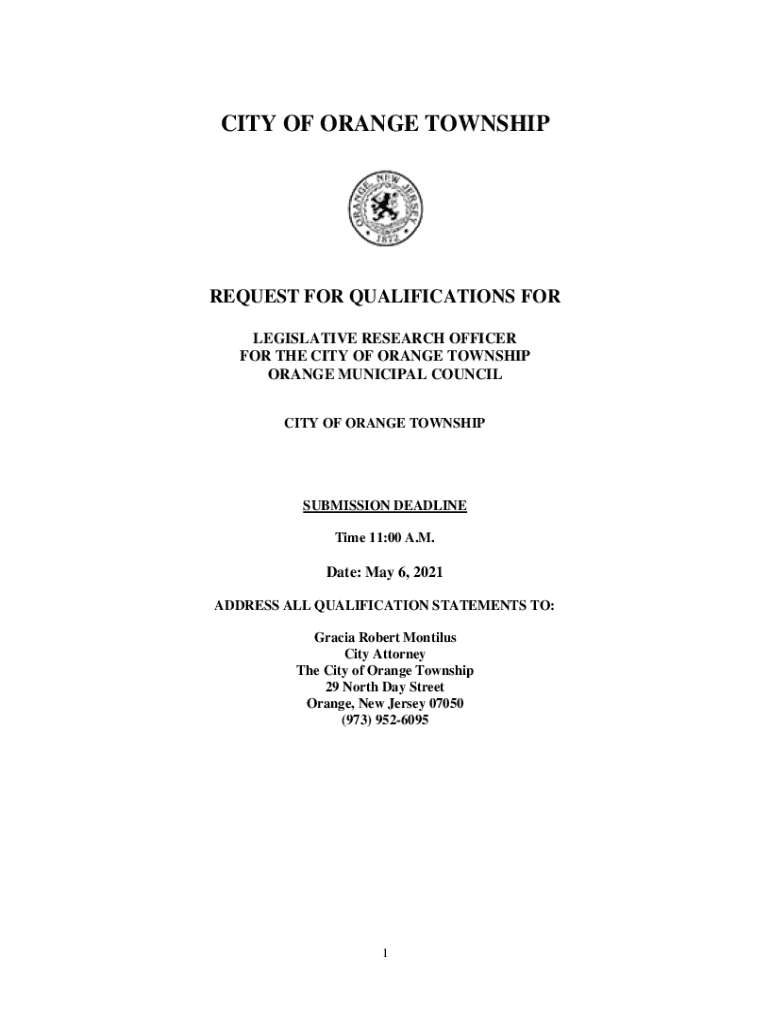 CITY OF ORANGE TOWNSHIPREQUEST FOR QUALIFICATIONS FOR