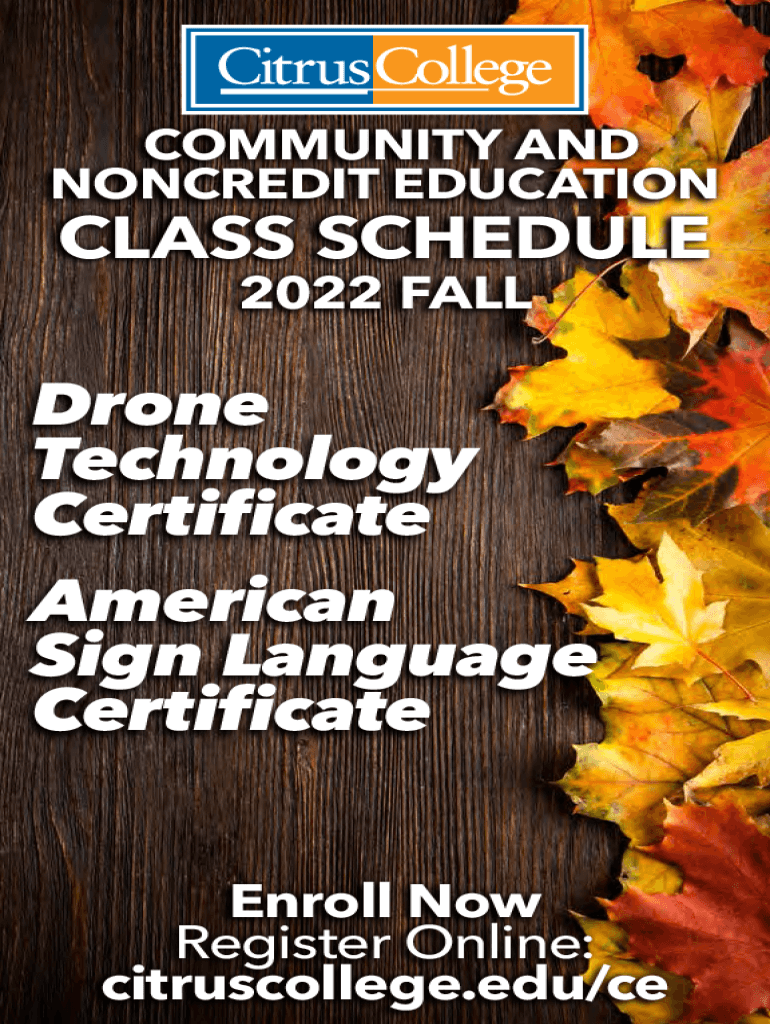 COMMUNITY AND NONCREDIT EDUCATIONALIST SCHEDULE 2022 Cauldron Technology Certificate American Sign Language Certificate Enroll Now Register Online: citruscollege.edu/ceCitrus College Continuing Educational