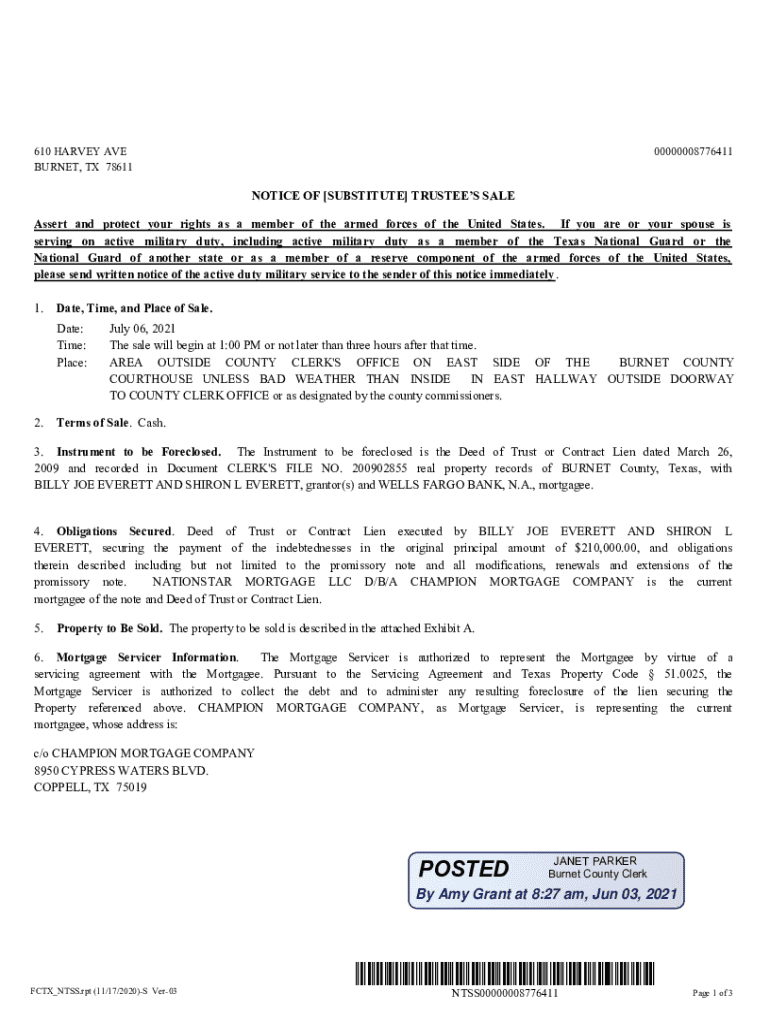 Get the free Notice of Substitute Trustee Sale - Liberty County