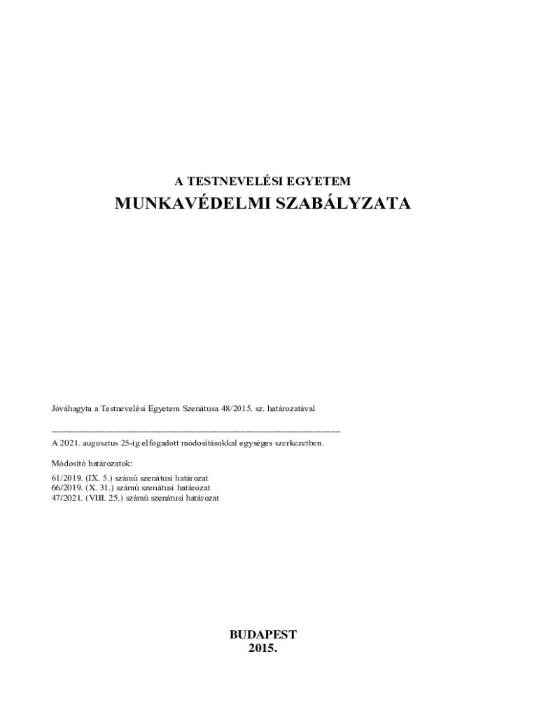 A TESTNEVELSI EGYETEMMUNKAVDELMI SZABLYZATAJvhagyta a Testnevelsi EyeEm Scents 48/2015. SZ. hatrozatval