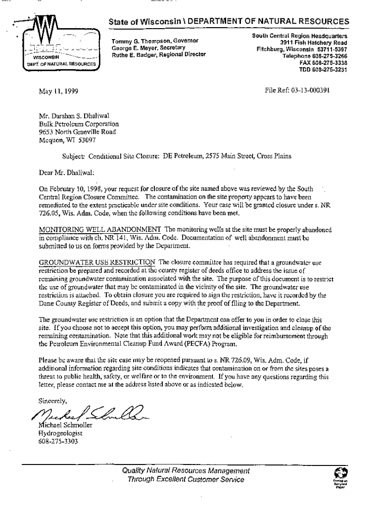 . , #7 :\'. r. .::;State of Wisconsin DEPARTMENT OF NATURAL RESOURCES Tommy G. Thompson, Governor George E. Meyer, Secretary Ruth E. Badger, Regional Directories. OF NATURAL RESOURCES South Central
