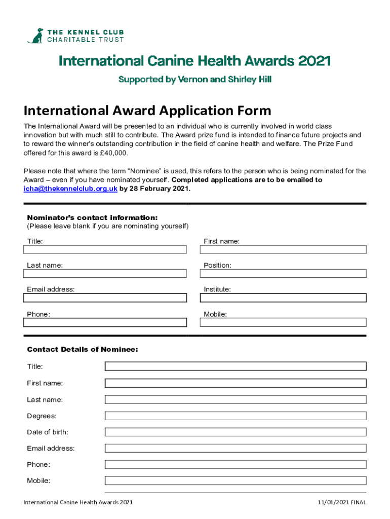 Get the free International Award Application Form - The Kennel Club