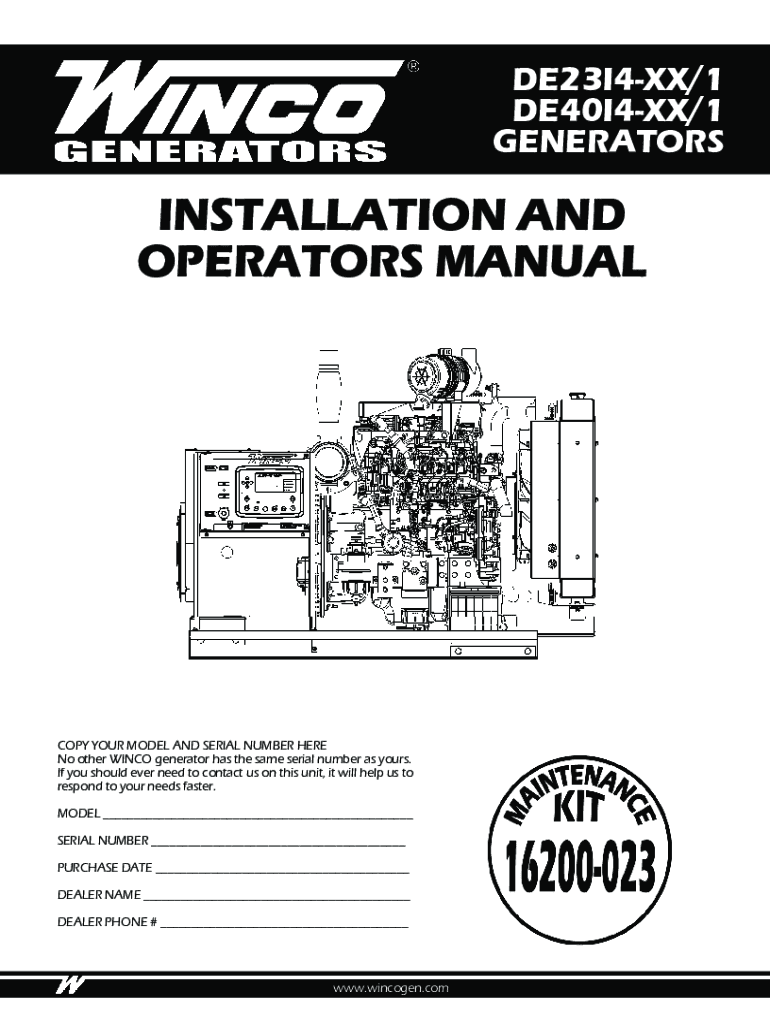 DE23I4XX/1 DE40I4XX/1 GENERATORSINSTALLATION AND OPERATORS MANUALLY YOUR MODEL AND SERIAL NUMBER HERE No other WINCH generator has the same serial number as yours. If you should ever need to contact