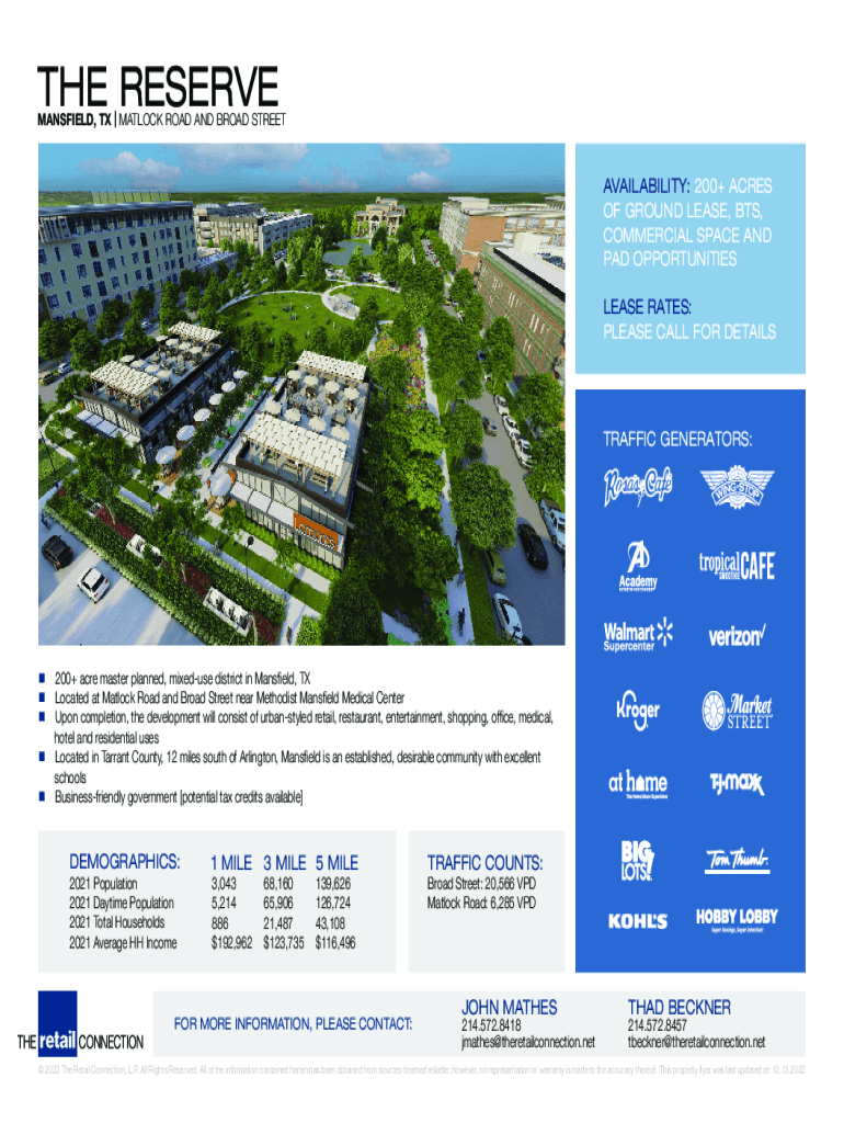 THE RESERVEMANSFIELD, TX | MATTOCK ROAD AND BROAD STREETAVAILABILITY: 200+ ACRES