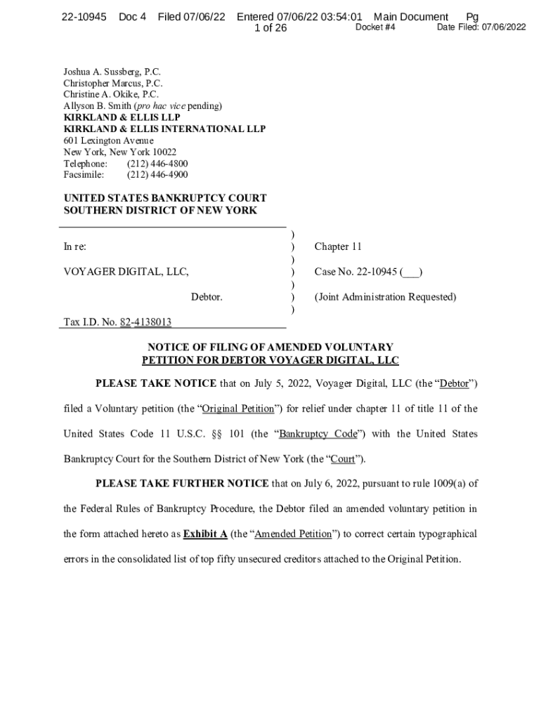 2210945Doc 4Filed 07/06/22Entered 07/06/22 03:54:01 Main Document Pg Docket #4 Date Filed: 07/06/2022 1 of 26Joshua A. Suss berg, P.C. Christopher Marcus, P.C. Christine A. Kike, P.C. Allyson B. Smith