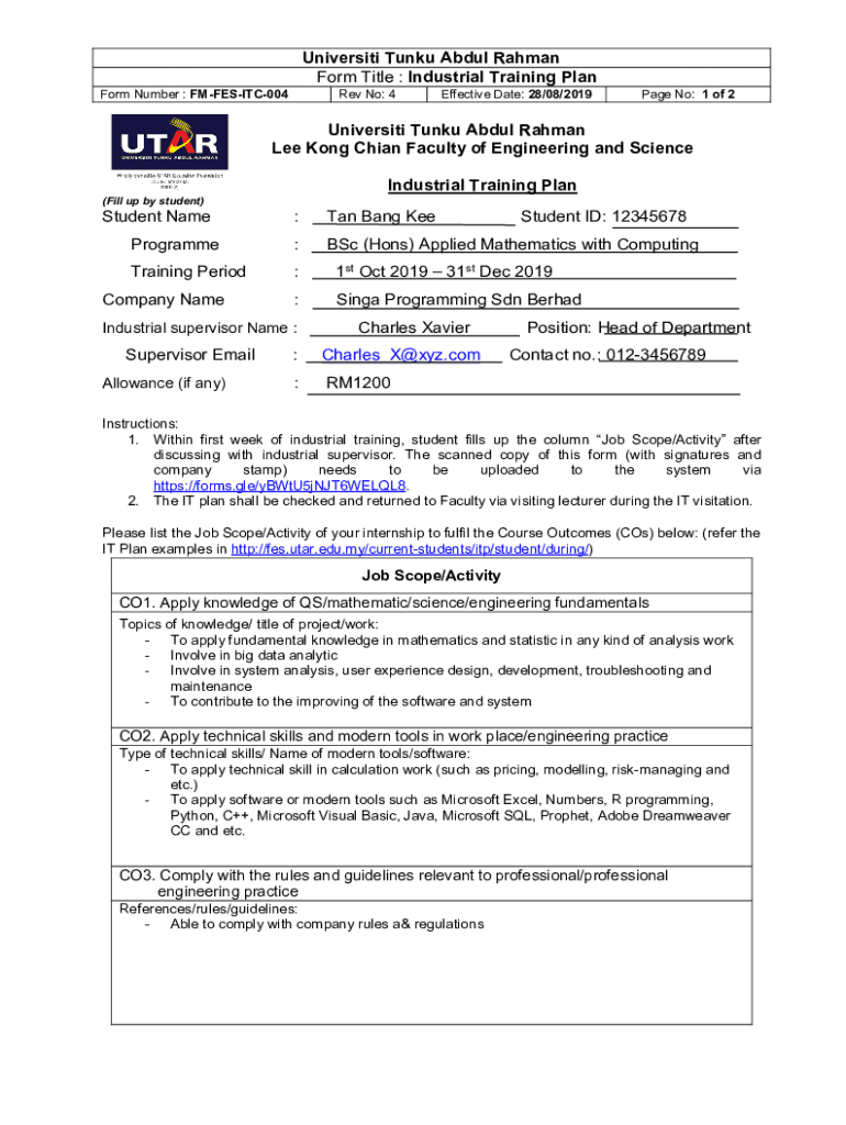 Form Title : Industrial Training Plan
