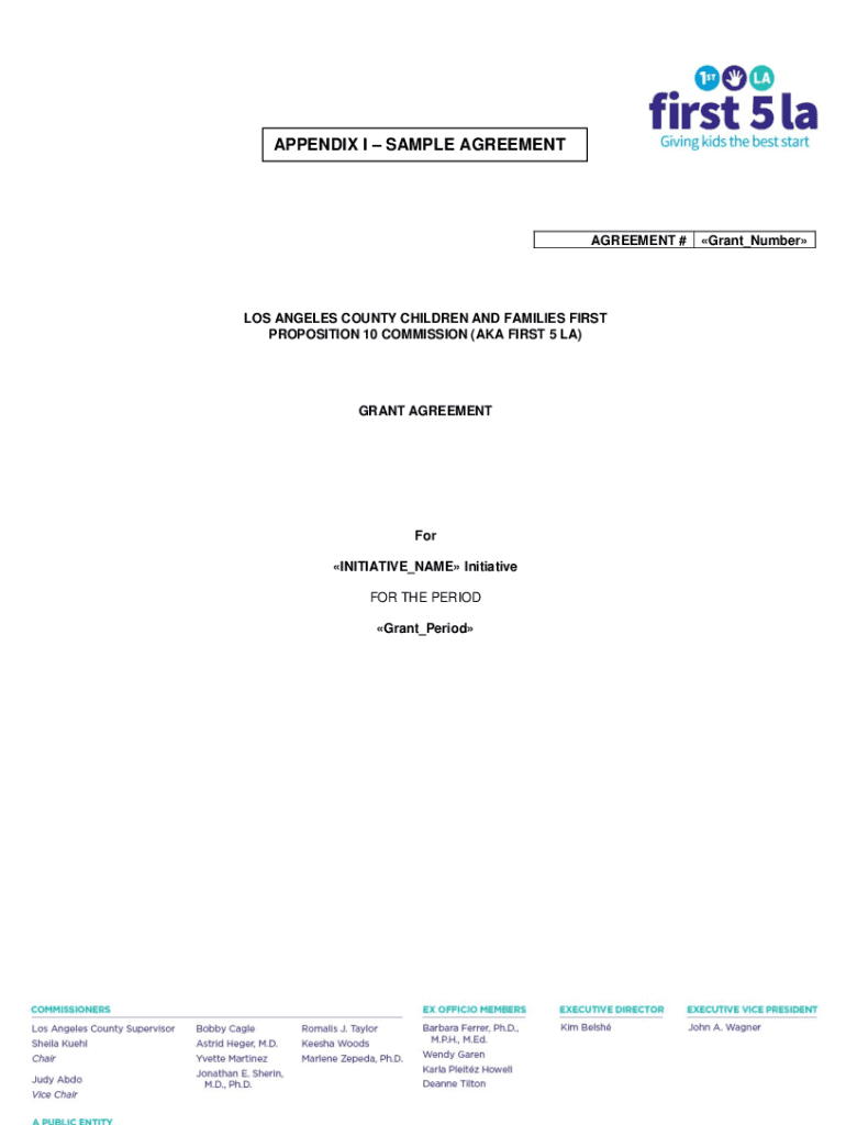 APPENDIX I SAMPLE AGREEMENTAGREEMENT #LOS ANGELES COUNTY CHILDREN AND FAMILIES FIRST