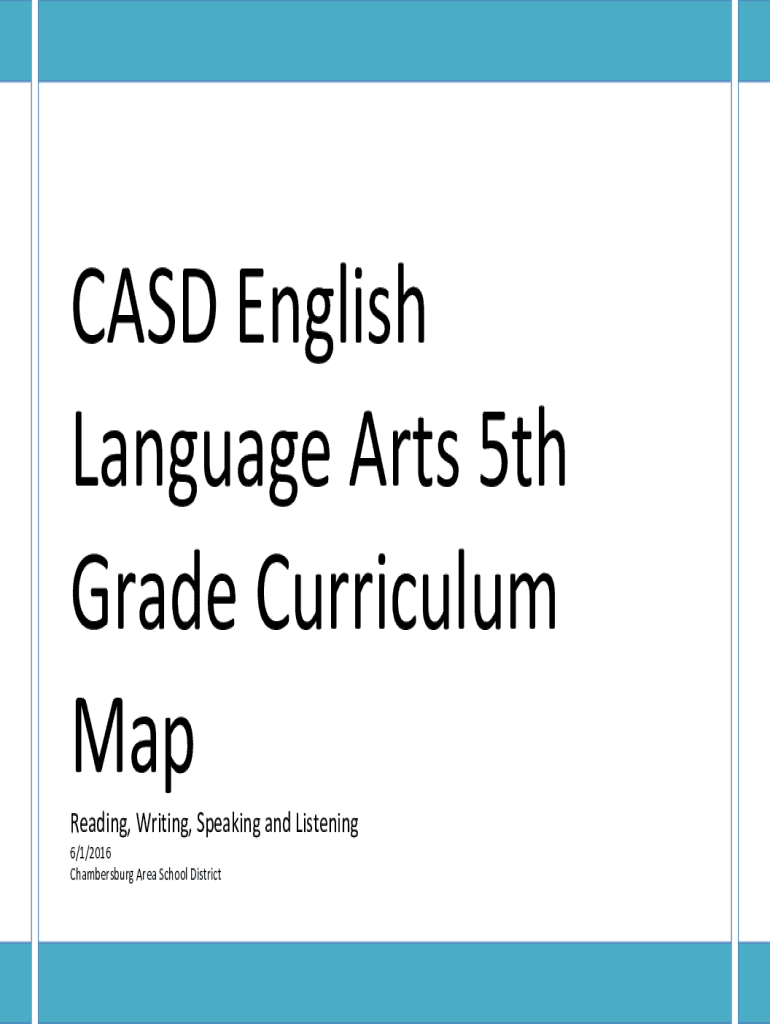 CASE English Language Arts 5th Grade Curriculum Map Reading, Writing, Speaking and Listening 6/1/2016 Chambersburg Area School District Key Reading Comprehension Strategies to be used throughout the