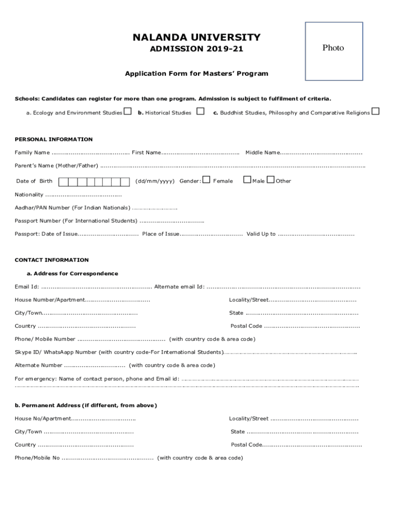 ADMISSION 201921PhotoApplication Form for Masters ProgramSchools: Candidates can register for more than one program. Admission is subject to fulfillment of criteria.
