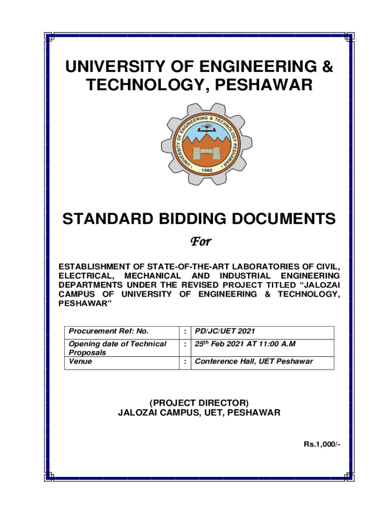 TECHNOLOGY, PESHAWARSTANDARD BIDDING DOCUMENTS
