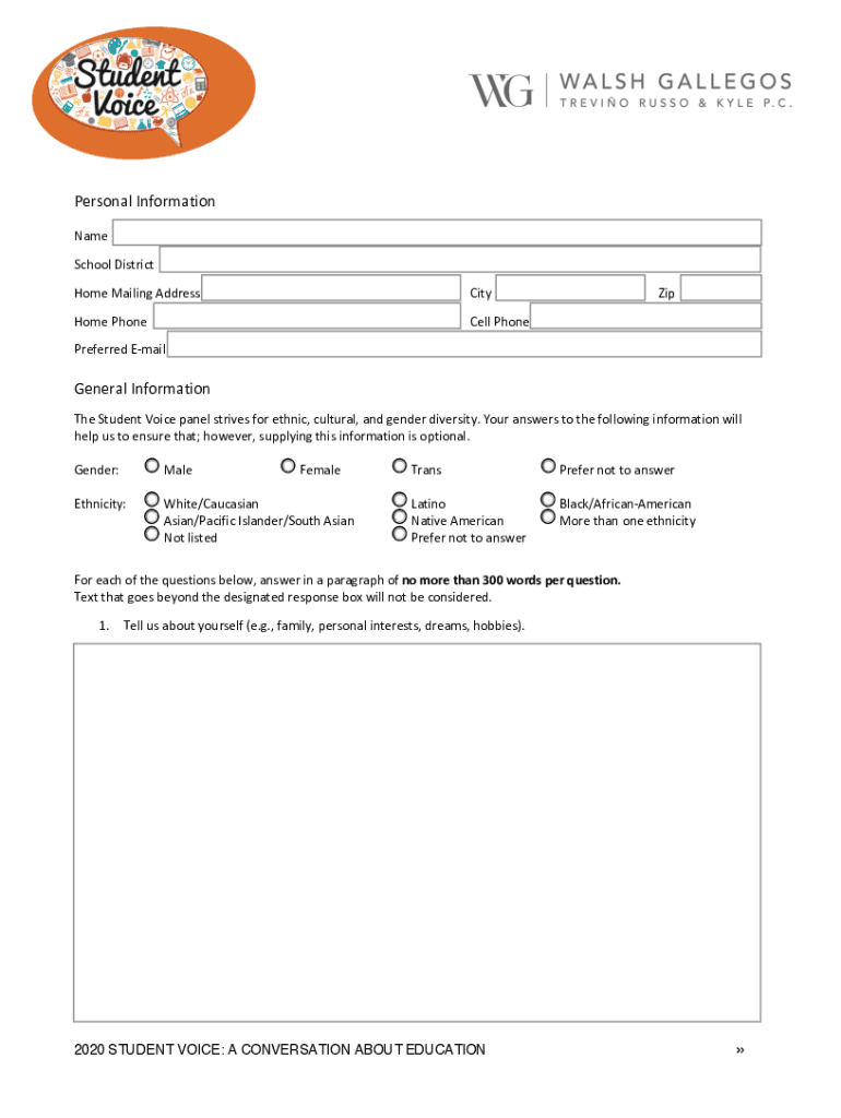STUDENT VOICE: A CONVERSATION ABOUT EDUCATION TASK GOVERNANCE CAMP FEBRUARY 2629, 2020 SAN LUIS HOTEL AND CONFERENCE CENTER, GALVESTON, TEXAS High school seniors are invited to be part of the student