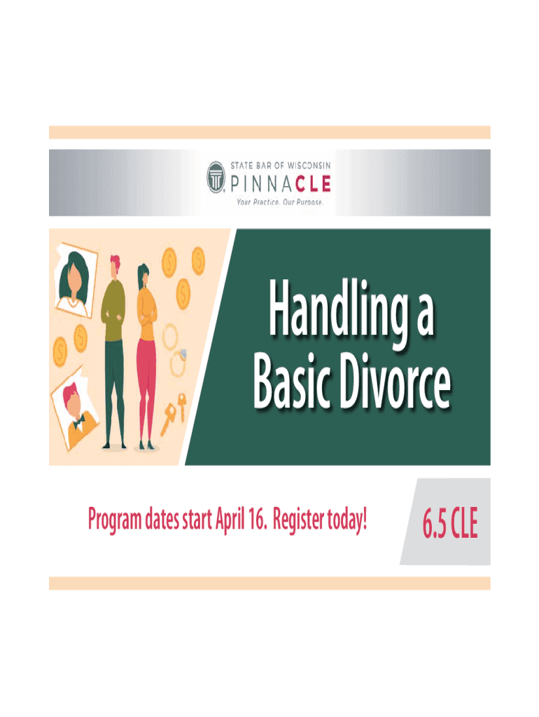 Handling a Basic Divorce Program dates start April 16. Register today!6.5 Rehandling a Basic Divorce Endorsed by the Young Lawyers Division of the State Bar of WisconsinCredits This program will be